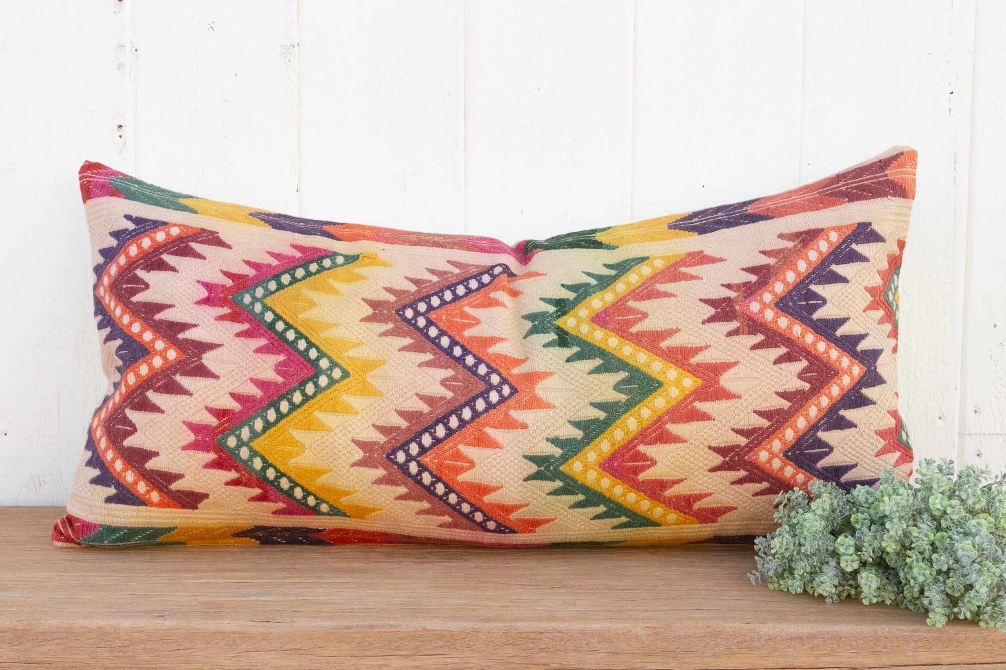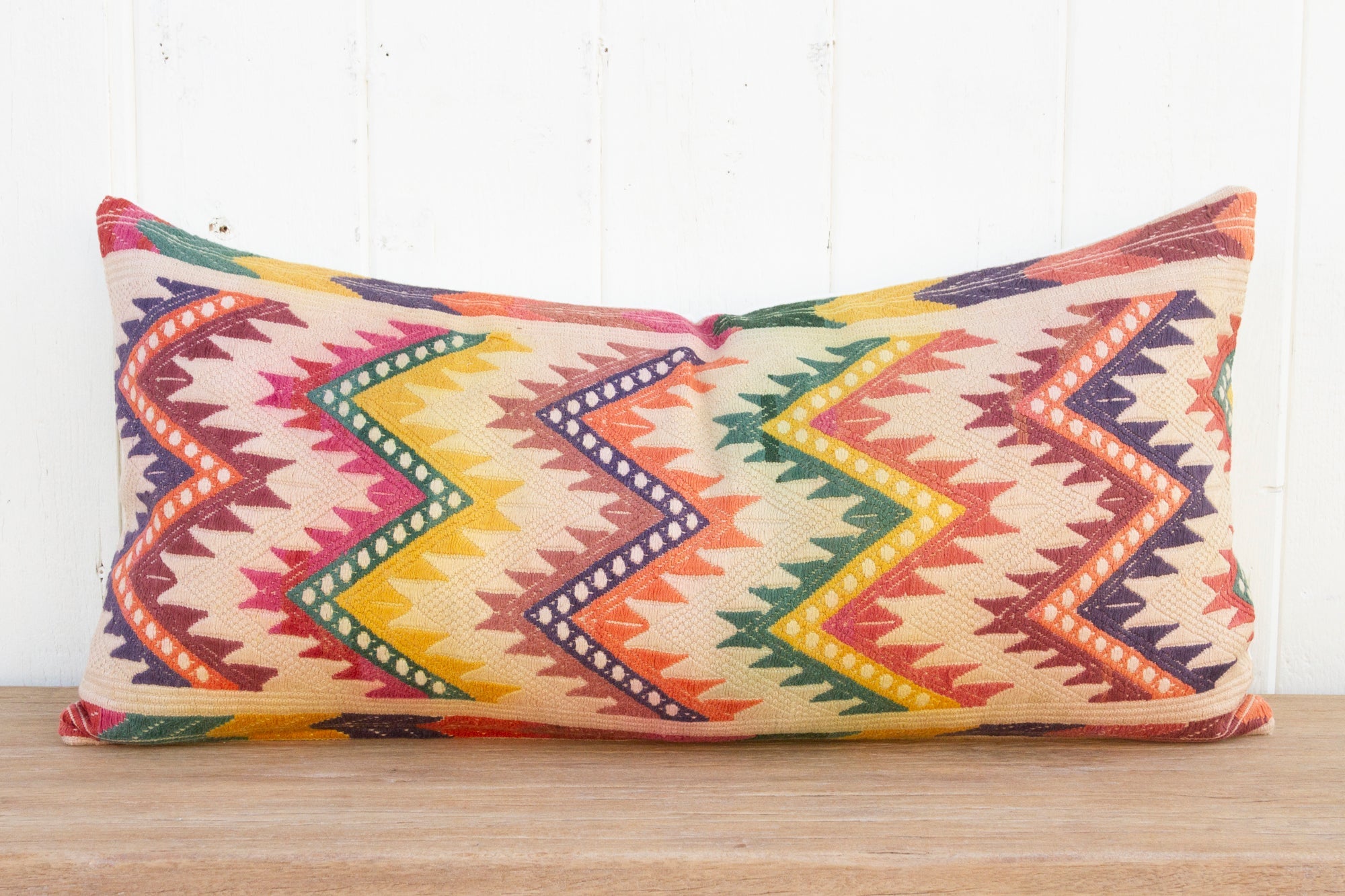 This beautiful pillow retains the distinctive patterns and textures of the original Frazada. Features a charming linen backing, a concealed zipper, and a soft down blend insert for ultimate comfort.