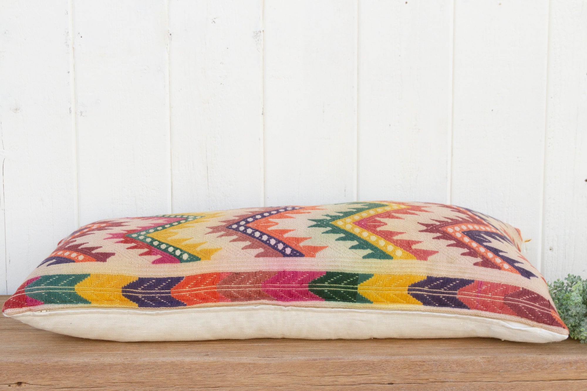 Originating from the Peruvian Andes, this captivating old Frazada pillow it's a unique piece brimming with history. Crafted from a vintage, handwoven throw, it embodies the time-honored traditions of the indigenous communities nestled in the highlands. Traditionally used as warm and protective blankets, Frazadas hold deep significance in Andean culture. Each pillow showcases the enduring legacy of Peruvian craftsmanship. Crafted from hand-spun, all-natural fibers and woven on back-strap looms, these one-of-a-kind pieces showcase vibrant colors obtained through natural dyes.