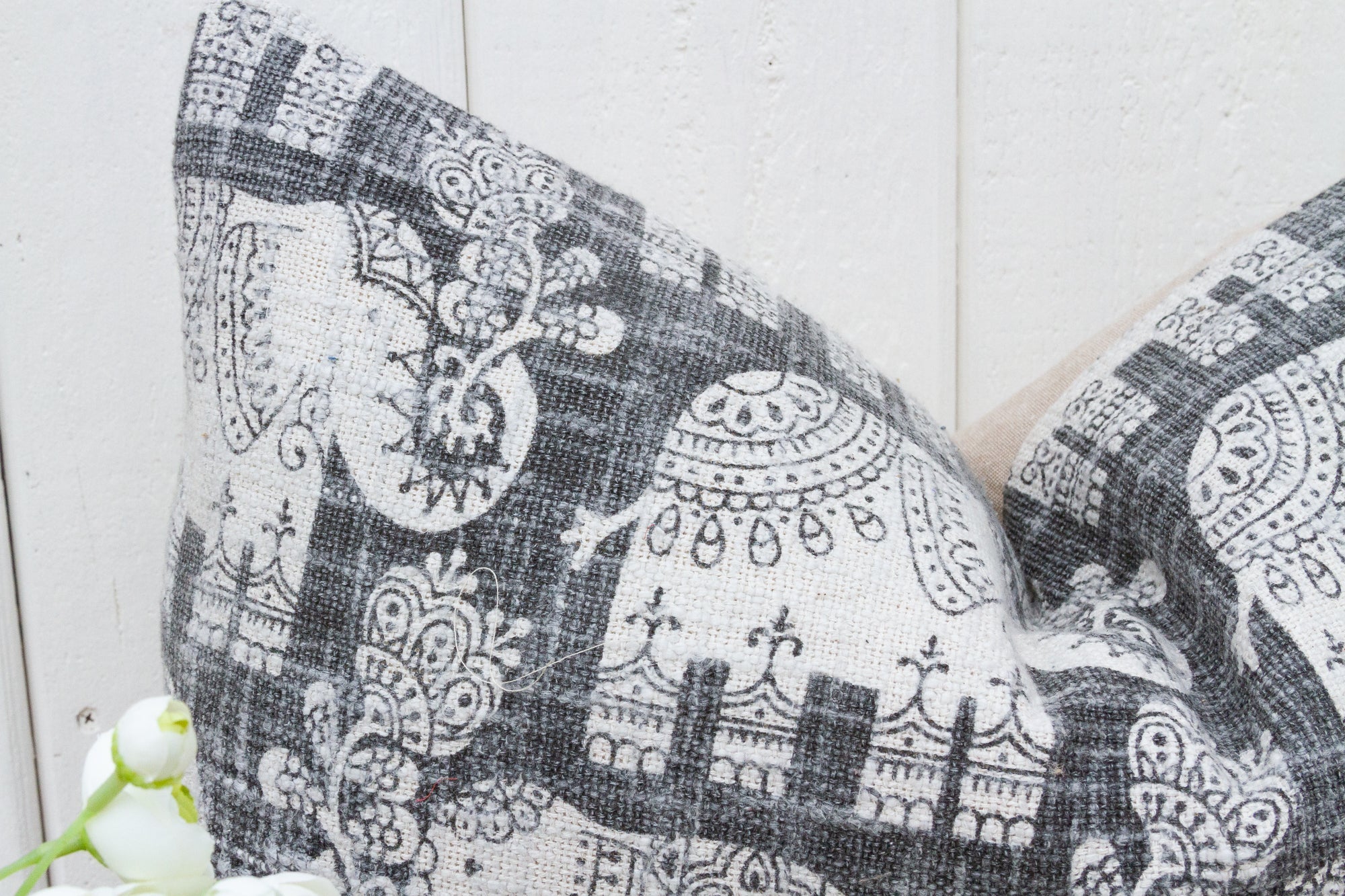 A staple of centuries old tradition and Indian culture, these Indian Dhurrie rug pillows feature a lovely block print design made by hand with vegetable dyes. This collection of Dhurrie pillows are made from heavy cotton, a similar material used for rugs. These Indian lumbar pillows make for a charming accessory in a living room or bedroom. Pillow insert not included.