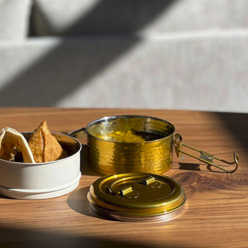 Designed for on-the-go foodies, our stainless steel Tiffin Lunch Boxes are equipped with secure lids, ensuring that your dishes stay deliciously intact during your commute. With multiple stackable compartments, you can create your own delicious combos. Keep your curry separate from your chutney, and your dessert far from your dal!