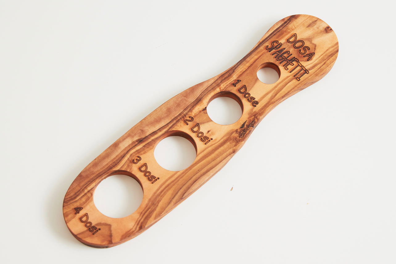 You won't have to guess how much spaghetti to cook for each person anymore thanks to this handy little Italian measuring device. Artisan-made from solid, boldly grained olivewood sustainably sourced in Italy. Natural variations in the wood pattern make each piece unique.